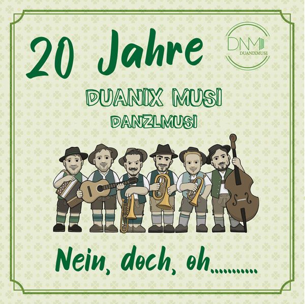 Seit 20 Jahren gibt es jetzt die Duanix Musi & Danzlmusi mit Musikanten aus dem Chiemgau und dem Mangfalltal. Und wie es sich für ein gscheides Jubiläum gehört, haben Norbert Schneider (Flügelhorn), Franz Schwarzenböck (Bassflügelhorn), Klaus Lerner (Posaune / Bassflügelhorn), Tobias Lerner (Ziach), Fabian Eibl (Gitarre) und Tobias Winkler (Kontrabass) das zum Anlass genommen und ihre dritte CD eingespielt: Nein, doch, ohhh …
