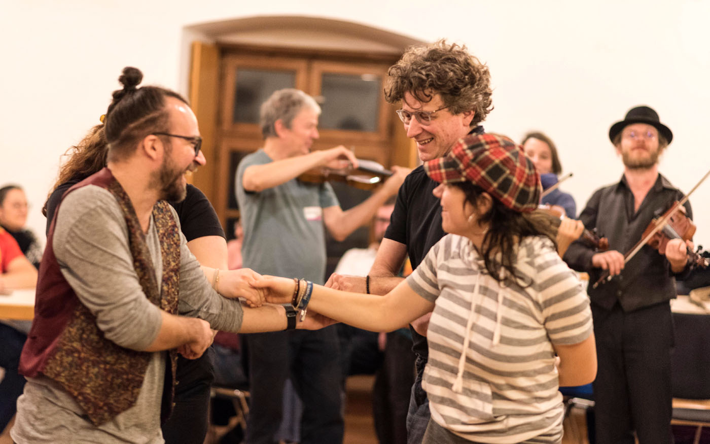Auf Musikseminaren ist der primäre Fokus die Vermittlung von Stücken am Instrument. Jedoch ist nicht nur das Spielen auf den Instrumenten, sondern auch das Singen, das Klopfen der Melodie am Körper und die Bewegung, ein Mittel, um die Musik besser zu verstehen. Eine Möglichkeit wäre beim Einstudieren, die Stücke, bevor man sie spielt, zu singen und sich dazu im Metrum zu bewegen. Die Gruppe kann auch den passenden Tanz lernen, um zu spüren, welches Tempo angenehm erscheint, oder wo der Schwerpunkt ist, beziehungsweise sein kann. Dasselbe Stück kann sich durch verschiedene Interpretationen sehr unterschiedlich anhören, weshalb es hilfreich ist, sich mit den Parametern, die die Vielseitigkeit einer Melodie beeinflussen, direkt beim Einstudieren zu befassen. Wie spüre ich das Tempo? Wo setze ich den Schwerpunkt? Welche Emotionen gebe ich in die Musik hinein? Die Rhythmik bringt mit ihren Methoden eine Mehrschichtigkeit für Lernprozesse mit sich, wodurch man Musik und Bewegung als ein Ganzes auf verschiedenen Wahrnehmungskanälen spüren und erlernen kann.
