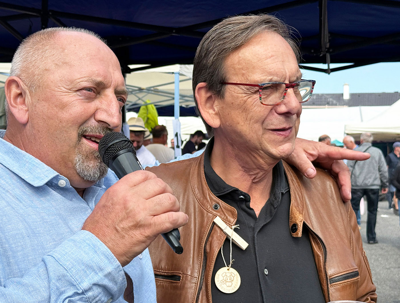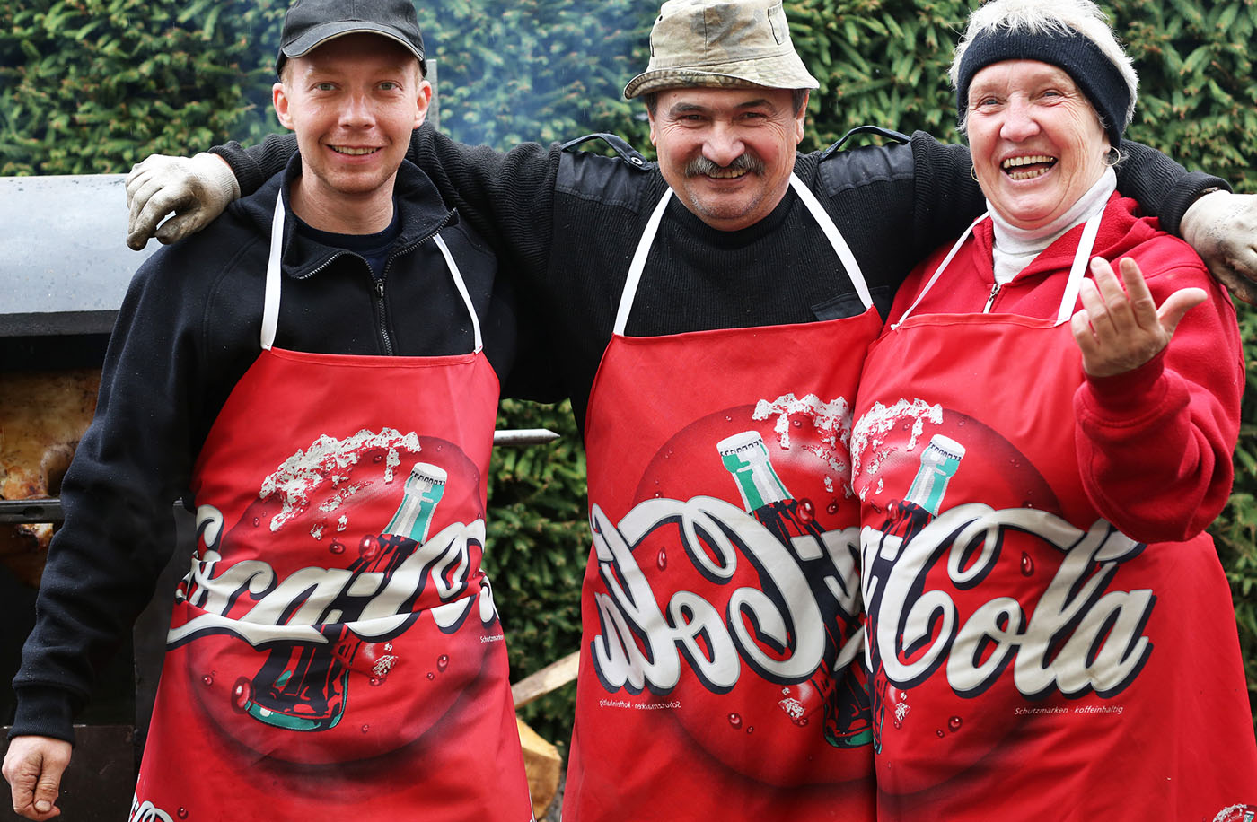 Pavel Valdmann, der Bürgermeister aus dem tschechischen Hartmanice und Franz Wittmann, sein Kollege aus dem bayerischen Viechtach, verstehen sich sofort. Zumindest bei einer wichtigen Sache, dem Grillen eines ganzen Schweins. Die spektakuläre Aktion begann vor gut zehn Jahren in dem kleinen böhmischen Dorf anlässlich der 150-Jahr-Feier der örtlichen Feuerwehr mit Bier, Gesang, Blasmusik und, eben, einem gegrillten Schwein. Die Begeisterung war positiv, das Fest musste wiederholt werden, alle Jahre wieder, bis es im Jahre 2025 mit zweiundzwanzig Grillstationen mit jeweils sechsköpfigem Team zu einem richtigen Volksfest wurde.