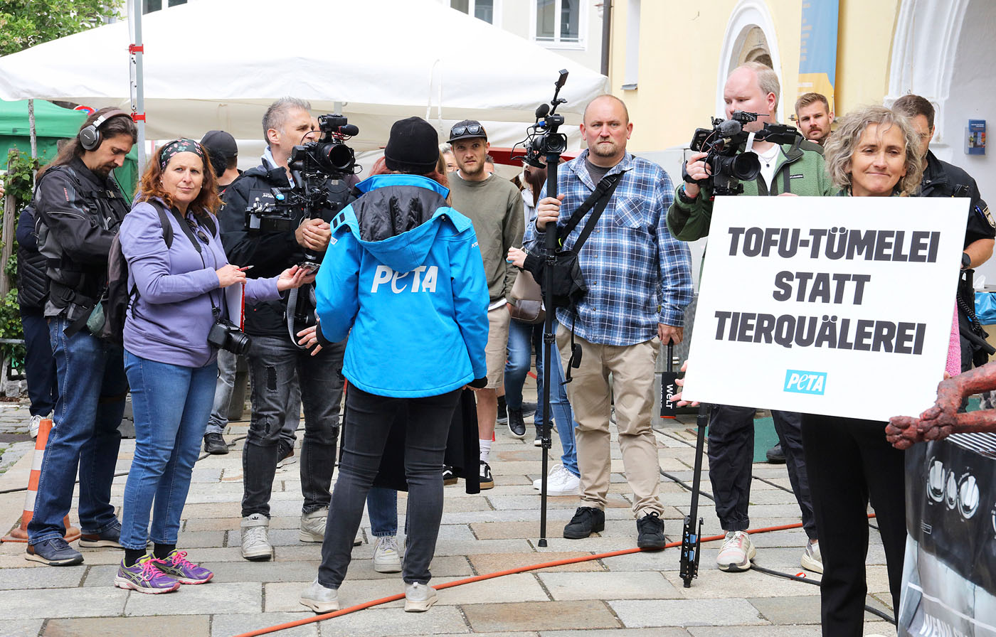 Es kommen auch die Gegnerinnen, Damen der lokalen Veganer mit einer Hundeattrappe, die sie zu grillen ankündigen. Die Aufregung ist enorm, die Leserbriefflut pro und contra massiv, die Presse von Berlin bis München berichtet und das bayerische Fernsehen sendet in Abendschau, quer und Capriccio. Private TV-Sender, Foren, Kanäle und Homepages belehren, polemisieren und kommentieren. Die Besucherzahl wird nun auf wenigstens drei- bis fünftausend prognostiziert.