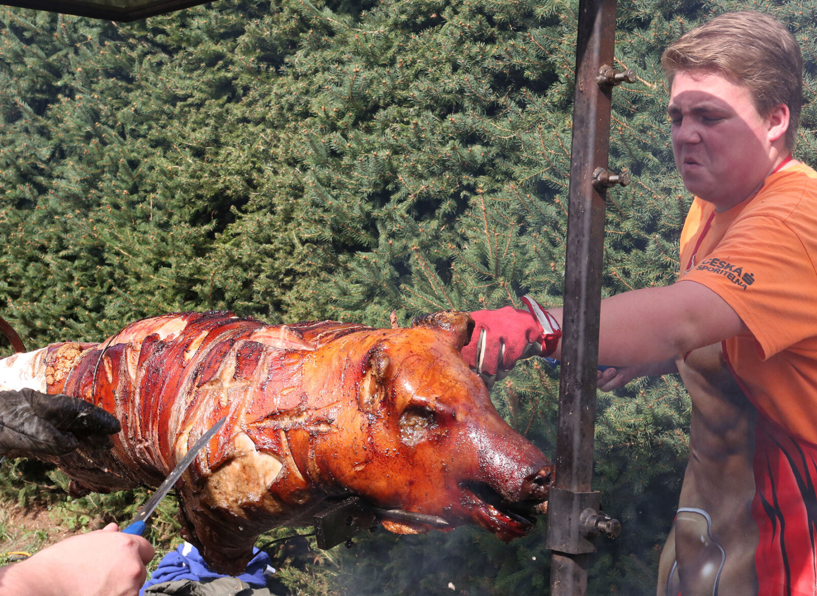 Doch es beteiligt sich nur ein tschechisches Team, ihnen ist das Politische bei einem Volksfest unangenehm und die Reise über hundert Kilometer einfach mit einem halben Dutzend Mitstreitern, einem Ster Buchenholz, einem mächtigen Grill und einem ganzen Schwein auch zu aufwendig.
